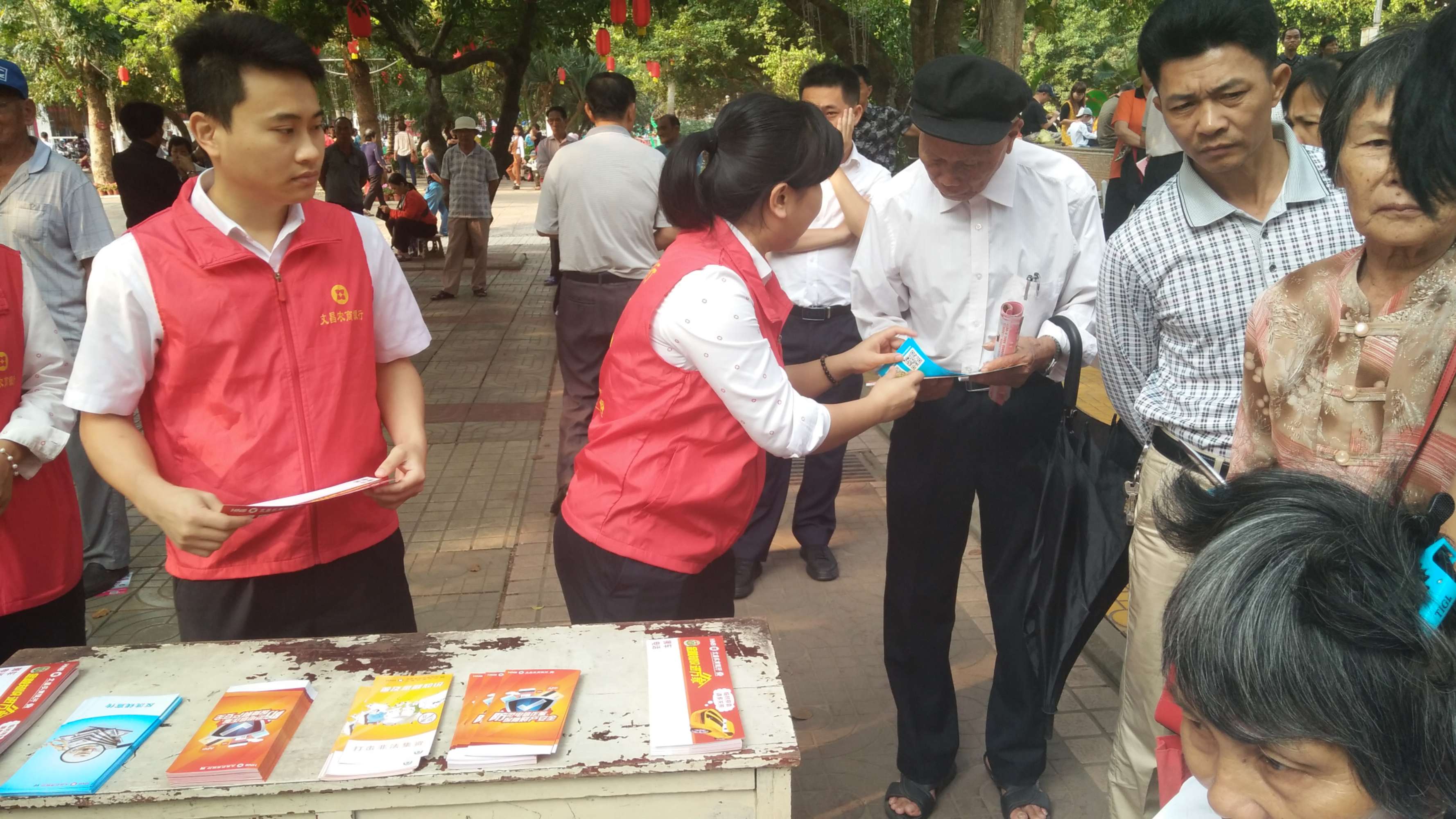 文昌公園是市民休閑娛樂集中地,特別是老年人居多,而他們更容易成為金融詐騙、電信詐騙團體的目標,我行志愿者通過在人員密集場所懸掛宣傳橫幅、設立咨詢臺、發(fā)放宣傳彩頁等宣傳手段,幫助他們了解更多金融知識和防詐騙方法。