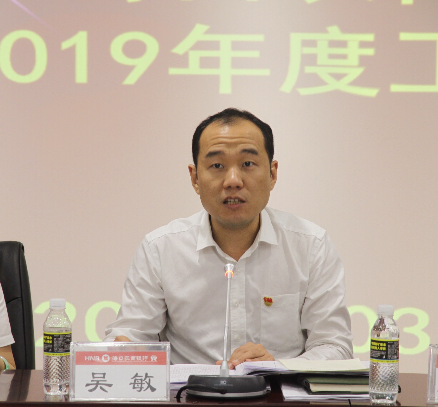 (海口農(nóng)商銀行董事長(zhǎng)吳敏發(fā)表講話)