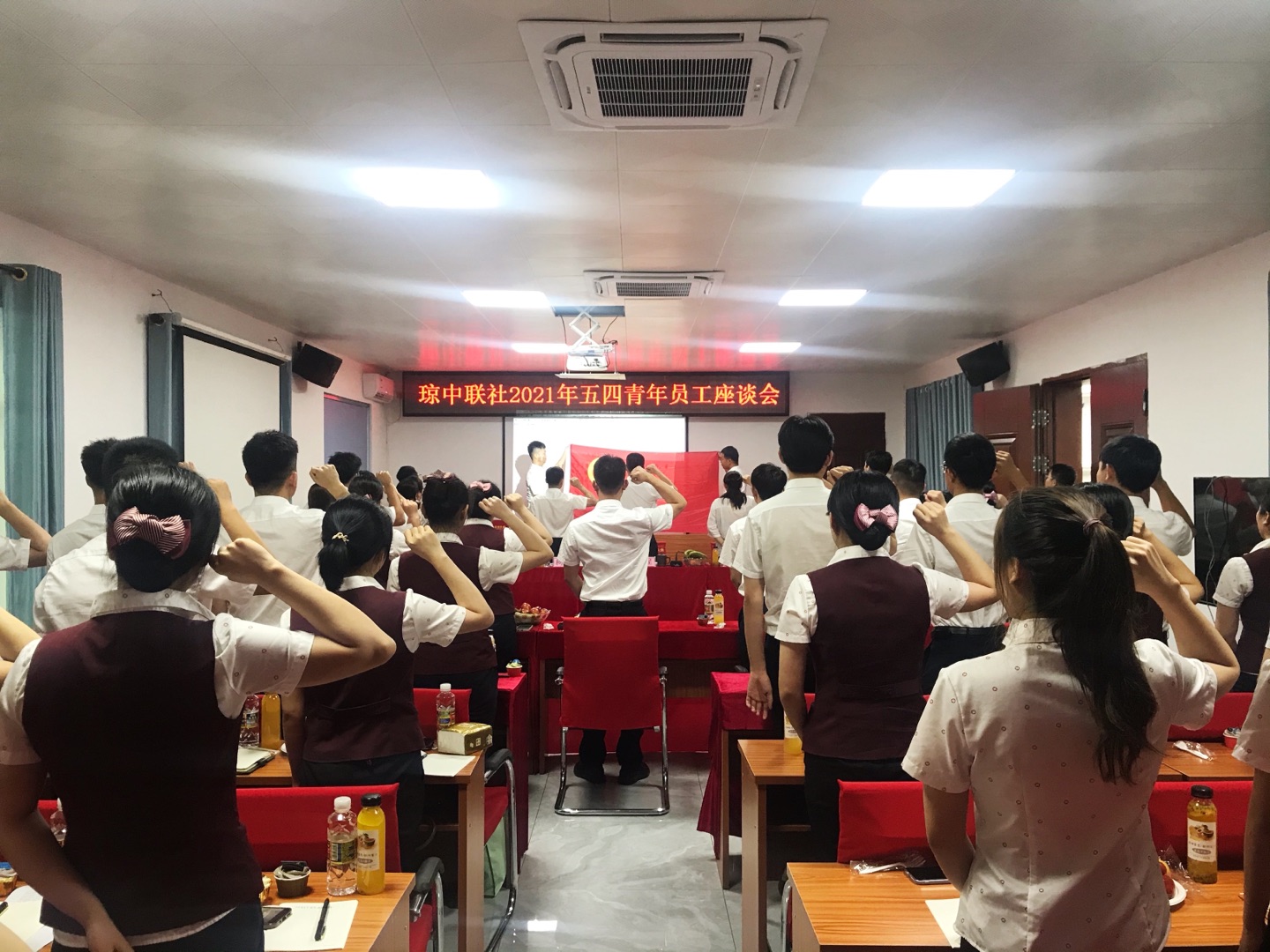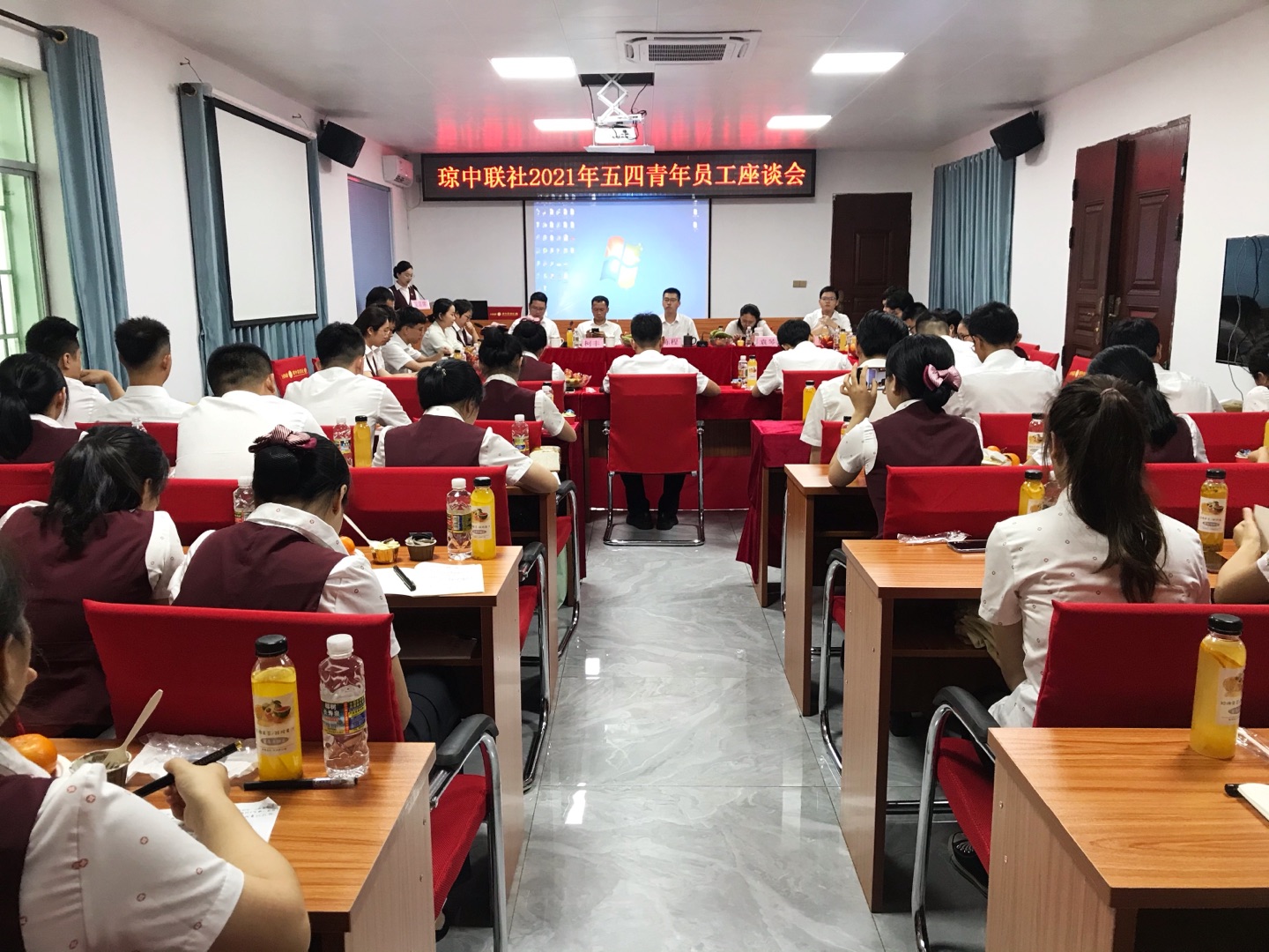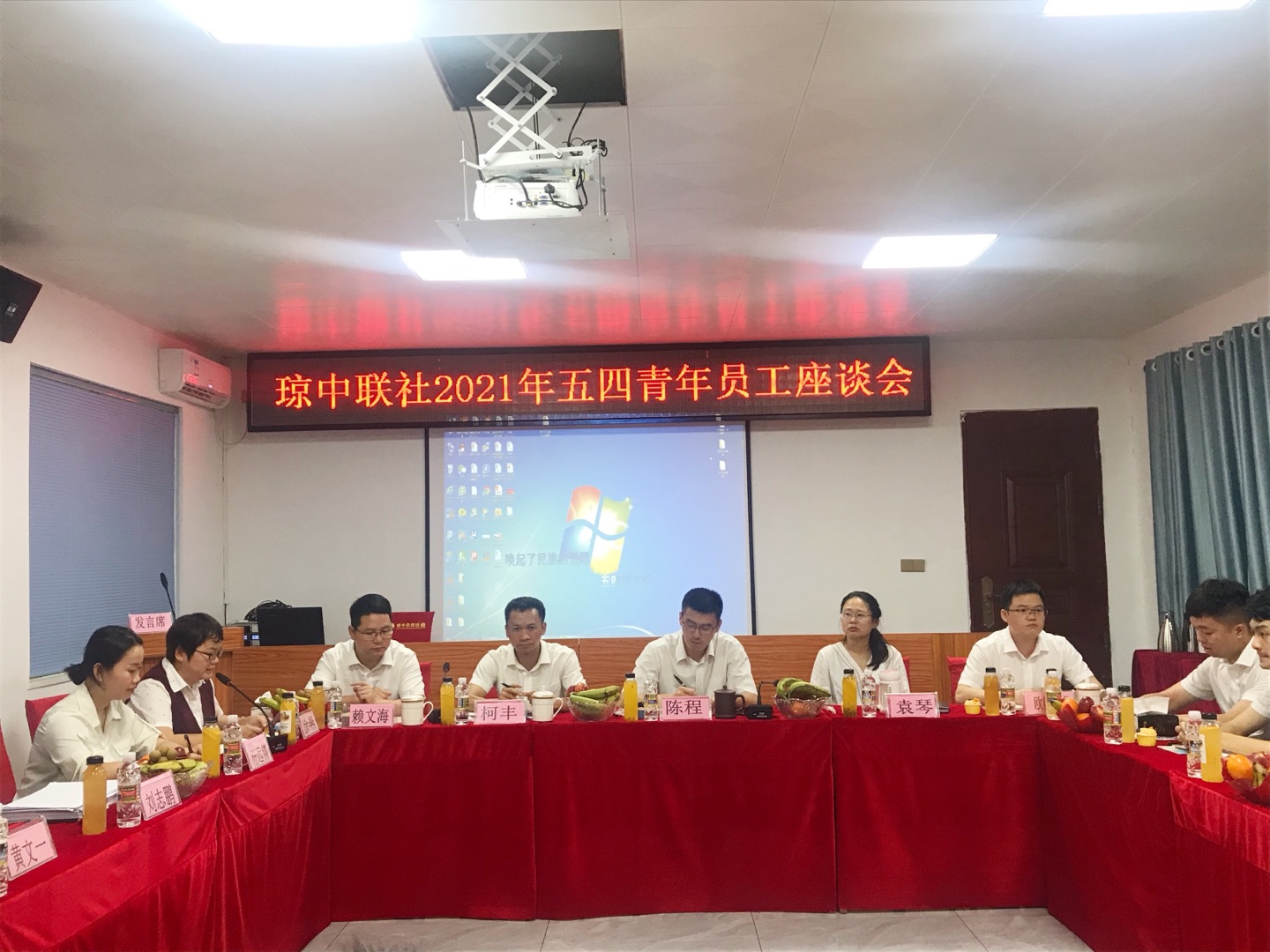 為慶祝中國共產(chǎn)黨建黨100周年,積極弘揚(yáng)“五四”精神,加強(qiáng)青年員工交流,4月28日下午,瓊中聯(lián)社團(tuán)總支組織青年員工召開“與農(nóng)信共奮進(jìn) 用青春譜篇章”主題座談會,座談會由團(tuán)委書記徐燕主持,聯(lián)社黨委書記、董事長陳程,紀(jì)委書記、監(jiān)事長柯豐,黨委委員、副主任賴文海,黨委委員、董事會秘書袁琴,財(cái)務(wù)總監(jiān)歐陽貴華,部分團(tuán)員及青年員工代表出席,參會人員近60人。