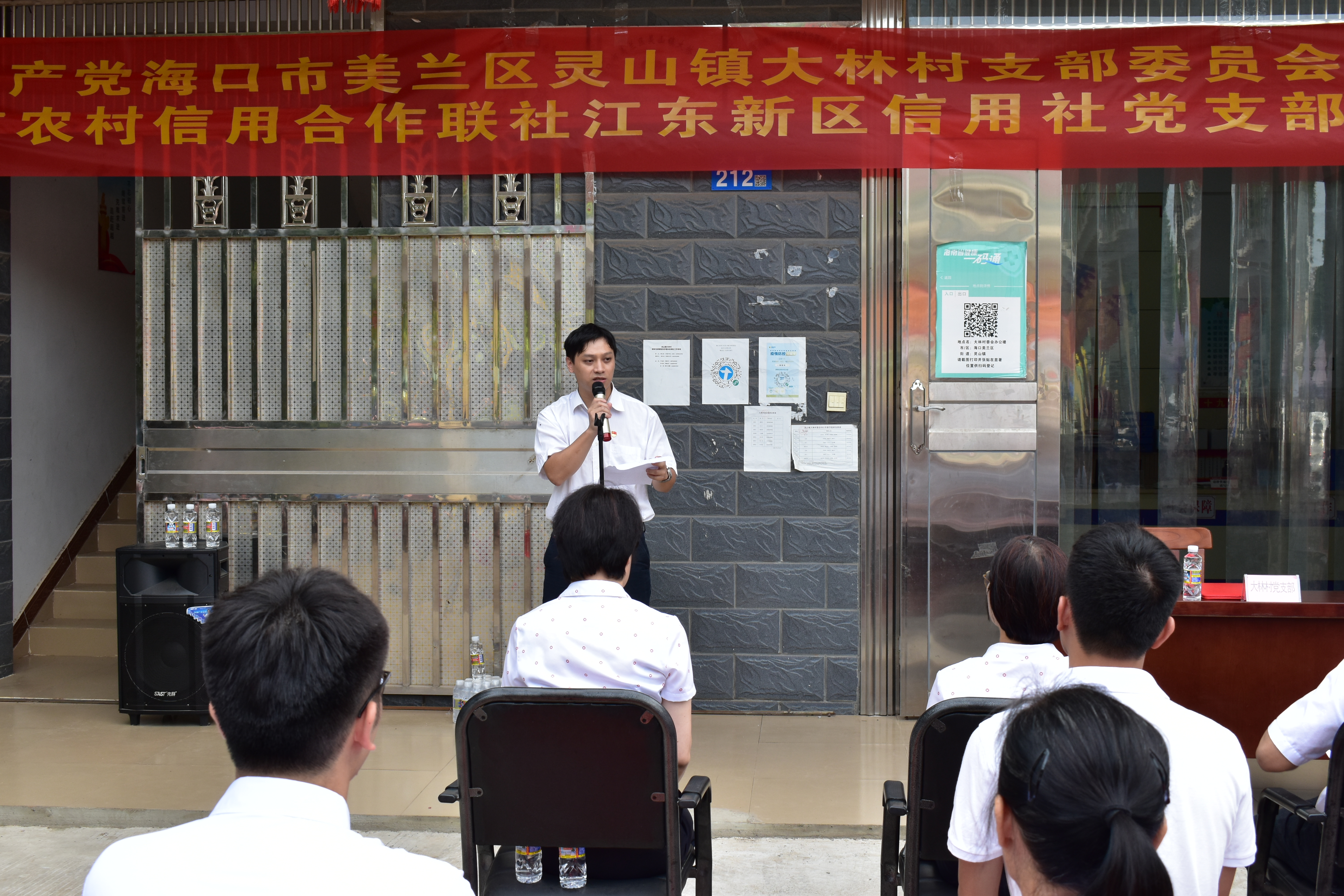 6月24日,??诼?lián)社江東新區(qū)信用社黨支部與靈山鎮(zhèn)大林村黨支部舉行黨建共建簽約儀式,并通過愛心慰問困難黨員、老黨員、貧困戶和金融知識宣傳等活動,深刻踐行“我為群眾辦實事”宗旨。共青團??谑形睍浄侥寺敵鱿顒硬⒅罗o,??谑形k公室科長莊雯文主持儀式,??诼?lián)社黨委委員、監(jiān)事長賀國斌、大林村黨支部書記吳鴻出席活動并致辭。