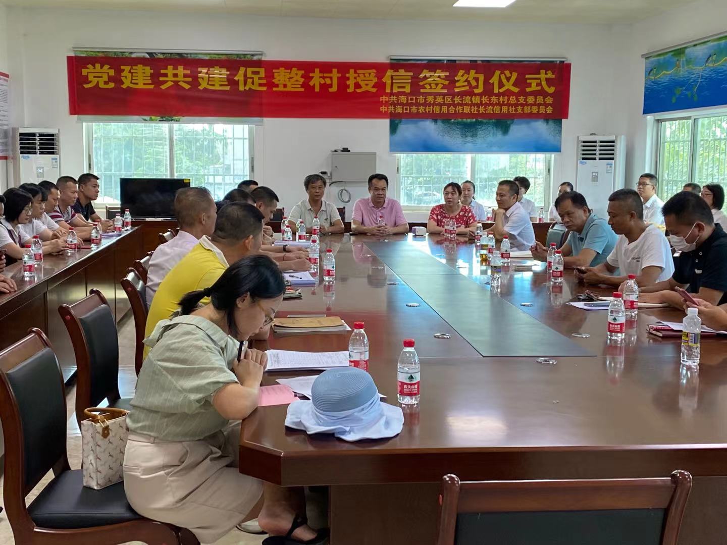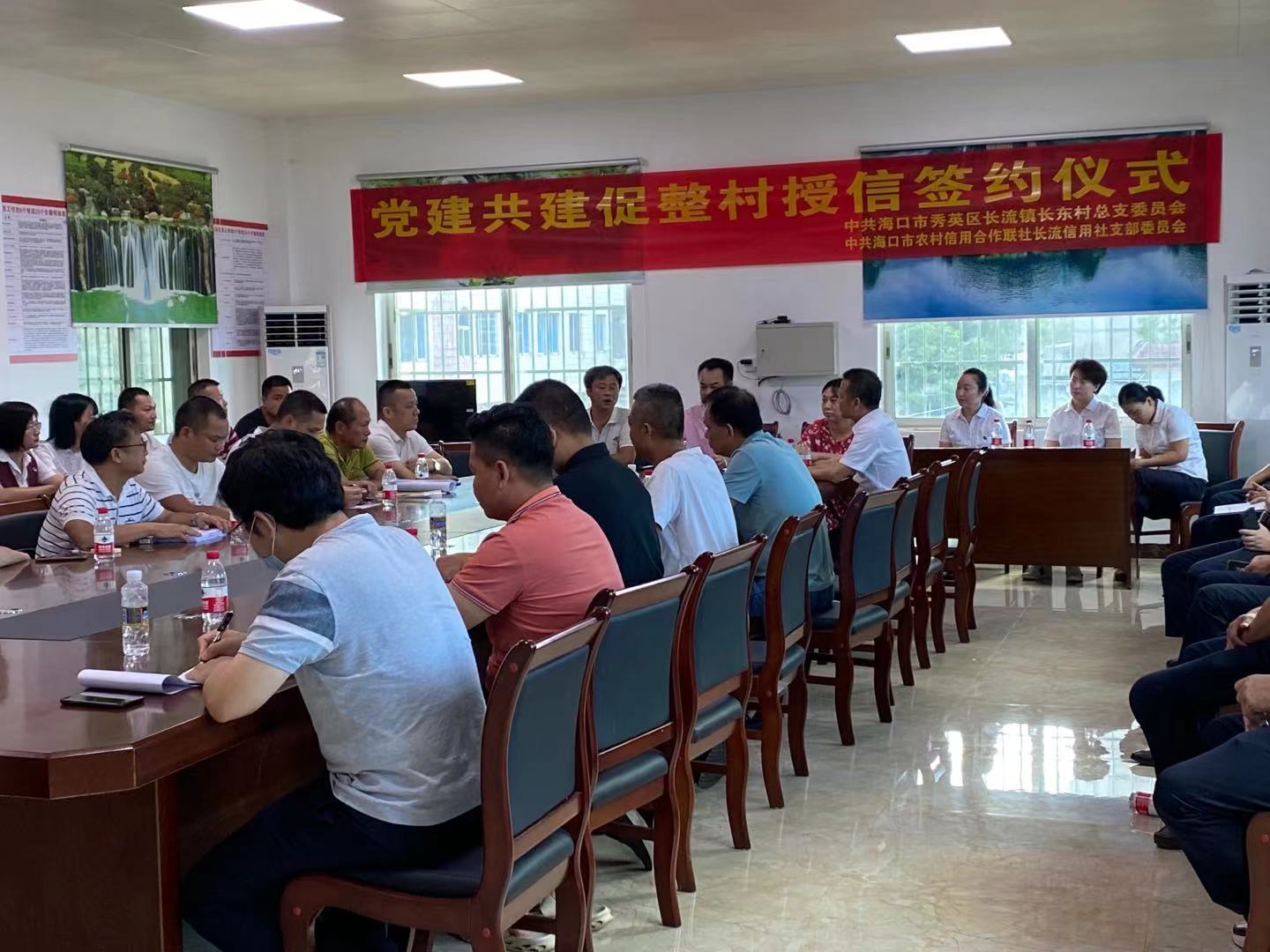 為推行鄉(xiāng)村振興+金融服務+信用體系建設,9月8日,海口聯(lián)社長流信用社黨支部與黨建共建單位長流鎮(zhèn)長東村委會黨支部舉行整村授信協(xié)議簽訂儀式。海口聯(lián)社主任助理蒙珊珊、長東村委會黨支部書記譚周經(jīng)出席簽約儀式并發(fā)表講話,長流鎮(zhèn)政府辦公室主任李志文、海口聯(lián)社長流信用社黨支部書記韋吉浩出席。