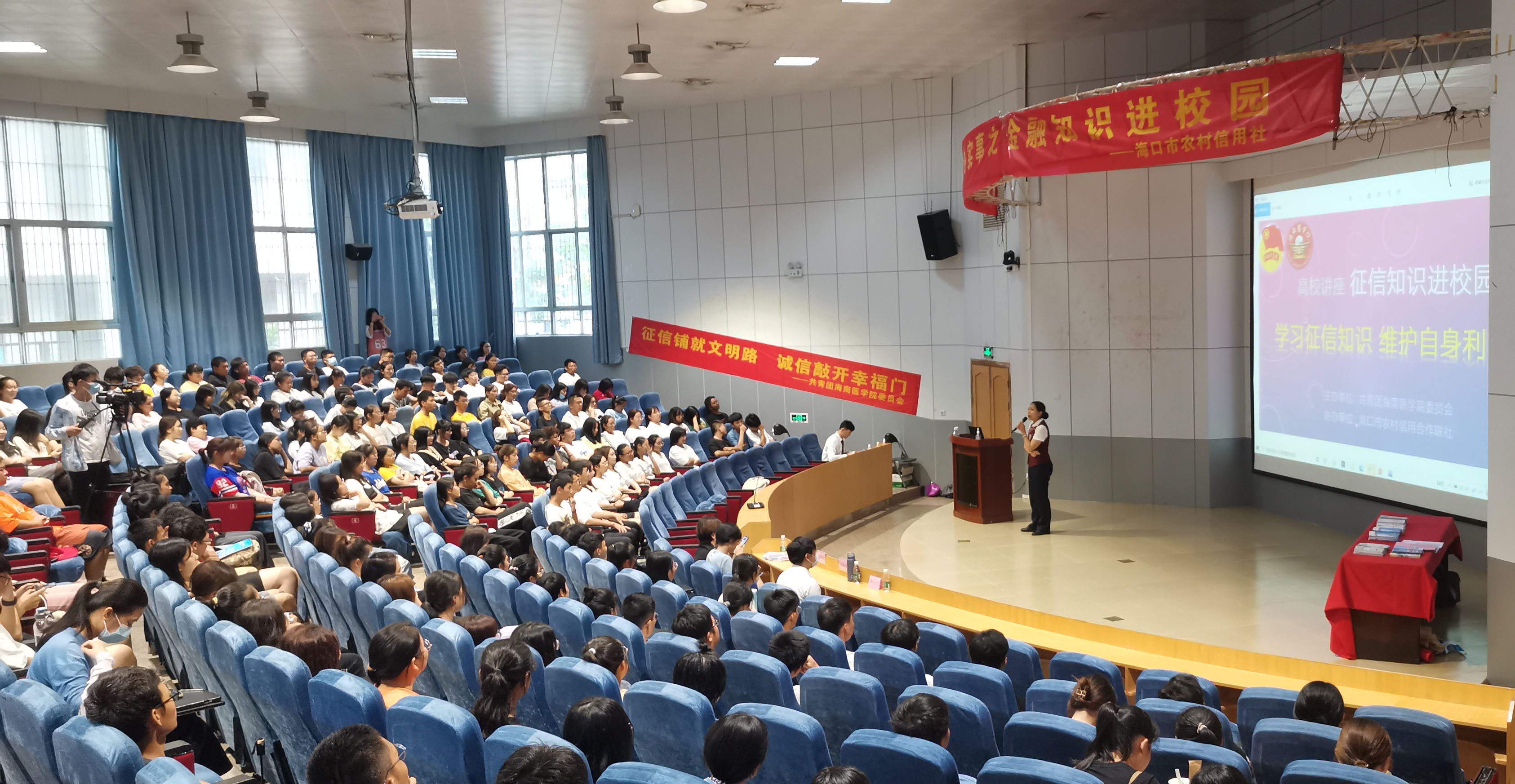 征信知識講堂設在海南醫(yī)學院能夠容納近300人的報告廳,開講之前,海南醫(yī)學院團委副書記宋融奉獻了一場關(guān)于誠信的精彩演說,到場的師生深受觸動,為接下來海口聯(lián)社工作人員普及征信知識進行了良好的鋪墊。隨后,??诼?lián)社征信知識講師王淑菲通過通俗易懂的語言和生動的事例講述了《征信知識以及防范“校園貸”陷阱》,為大家解讀不守誠信的壞處以及校園貸的危害和防范。師生們踴躍參與現(xiàn)場互動,紛紛就身邊遇到的問題進行提問和交流,由講師和工作人員進行解惑答疑。講座結(jié)束后工作人員通過設置展臺發(fā)放征信宣傳折頁和宣傳冊,讓學生把征信知識“帶在身邊、裝進頭腦”,形成正確的金融消費和誠信守諾觀念。