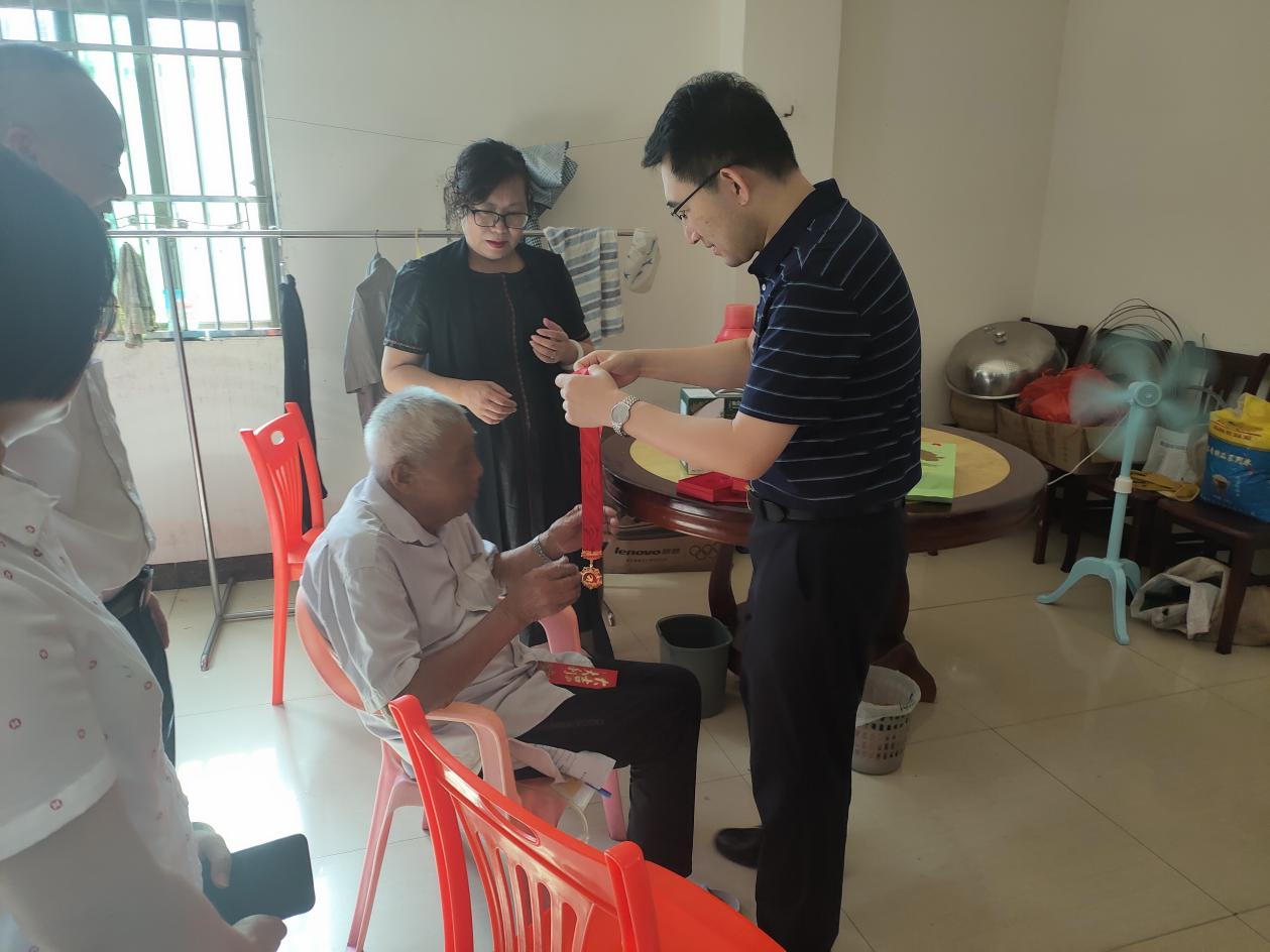 6月30日,省聯(lián)社黨委委員、副主任劉國鑫來到??诼?lián)社海秀信用社黨支部退休老黨員李才梓同志家里,為老黨員送去慰問品和節(jié)日的祝福。??诼?lián)社黨委書記、理事長周晗陪同。